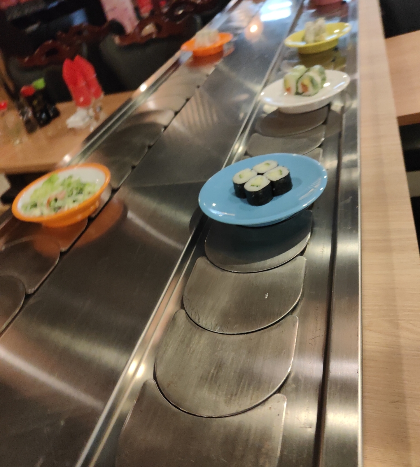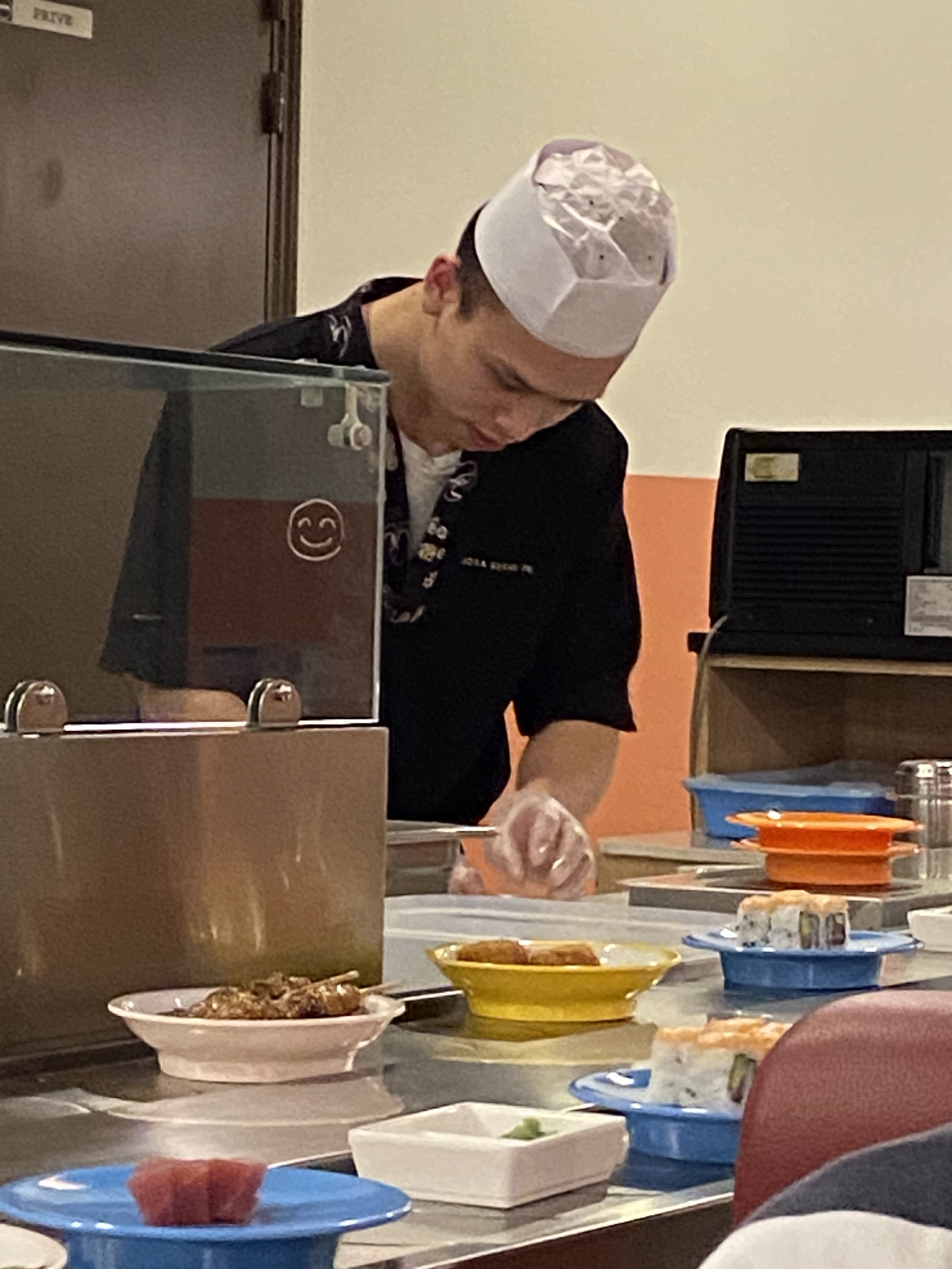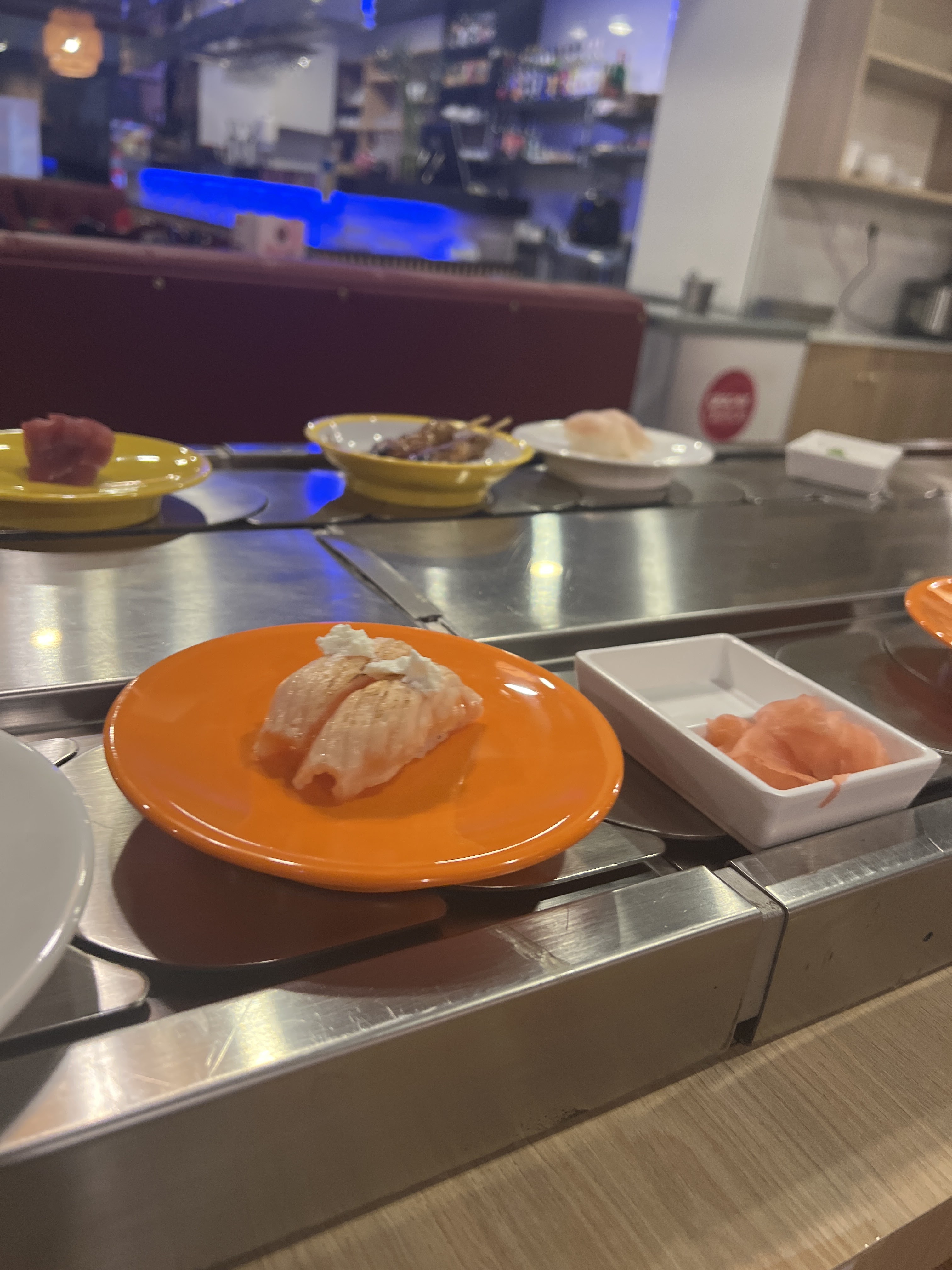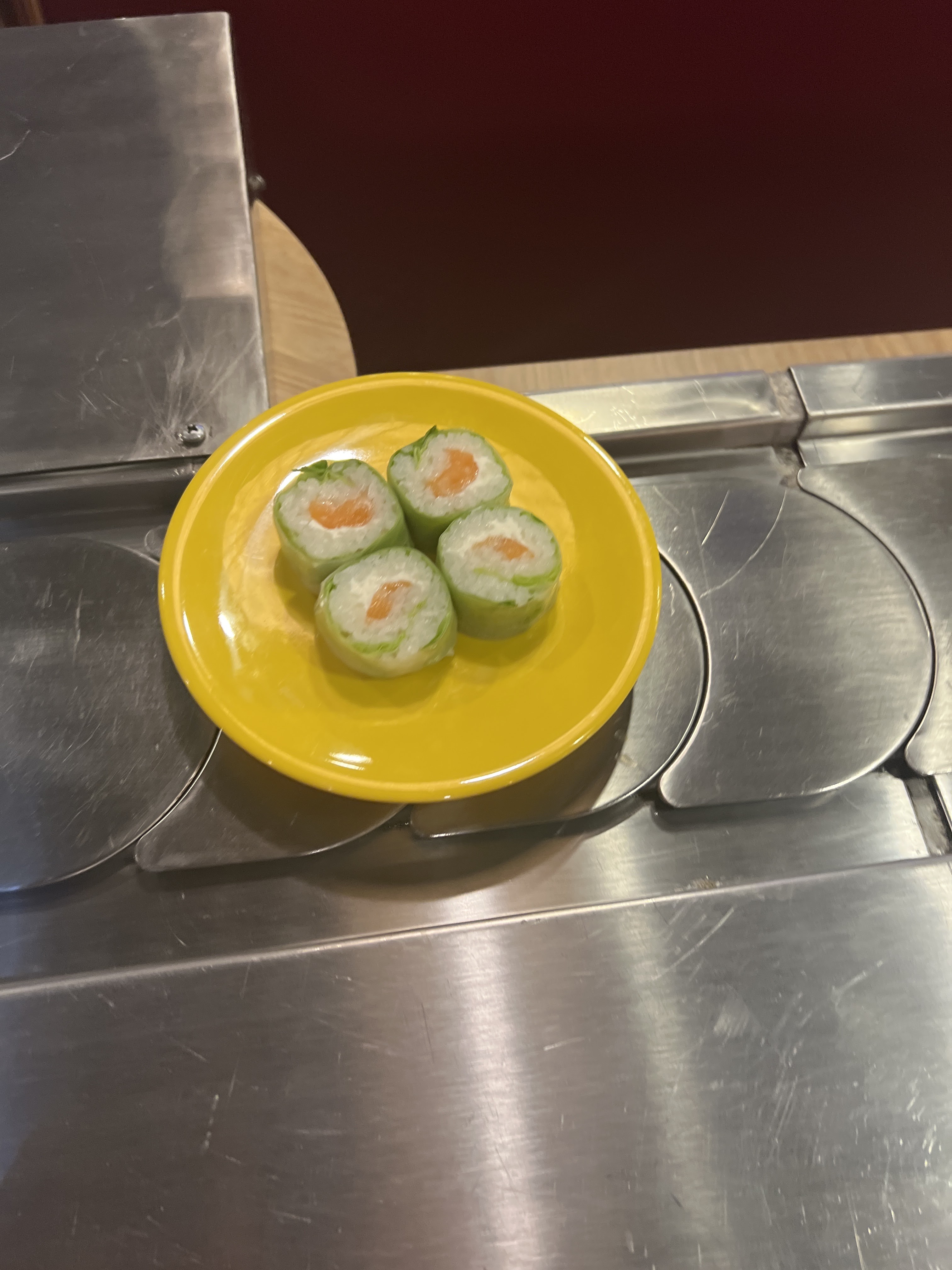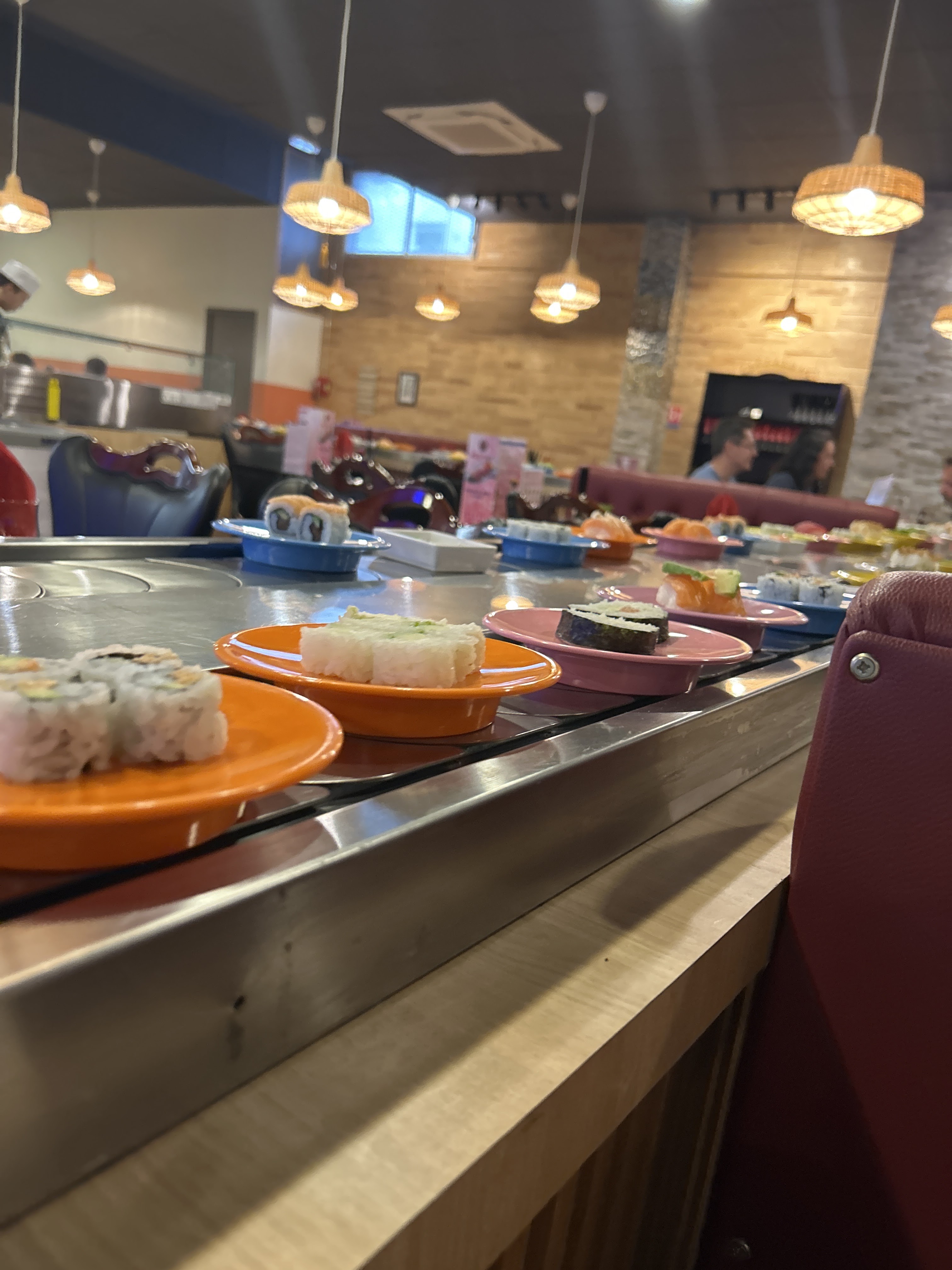 Restaurant a volonté très sympathique sur tapis roulant. Le plus de ce dernier c'est qu'ils servent même les sashimis à volonté, chose très rare dans ce genre de Restaurant. La nourriture est de plus, excellente. Le service est impeccable et le personnel au top et très aimable !