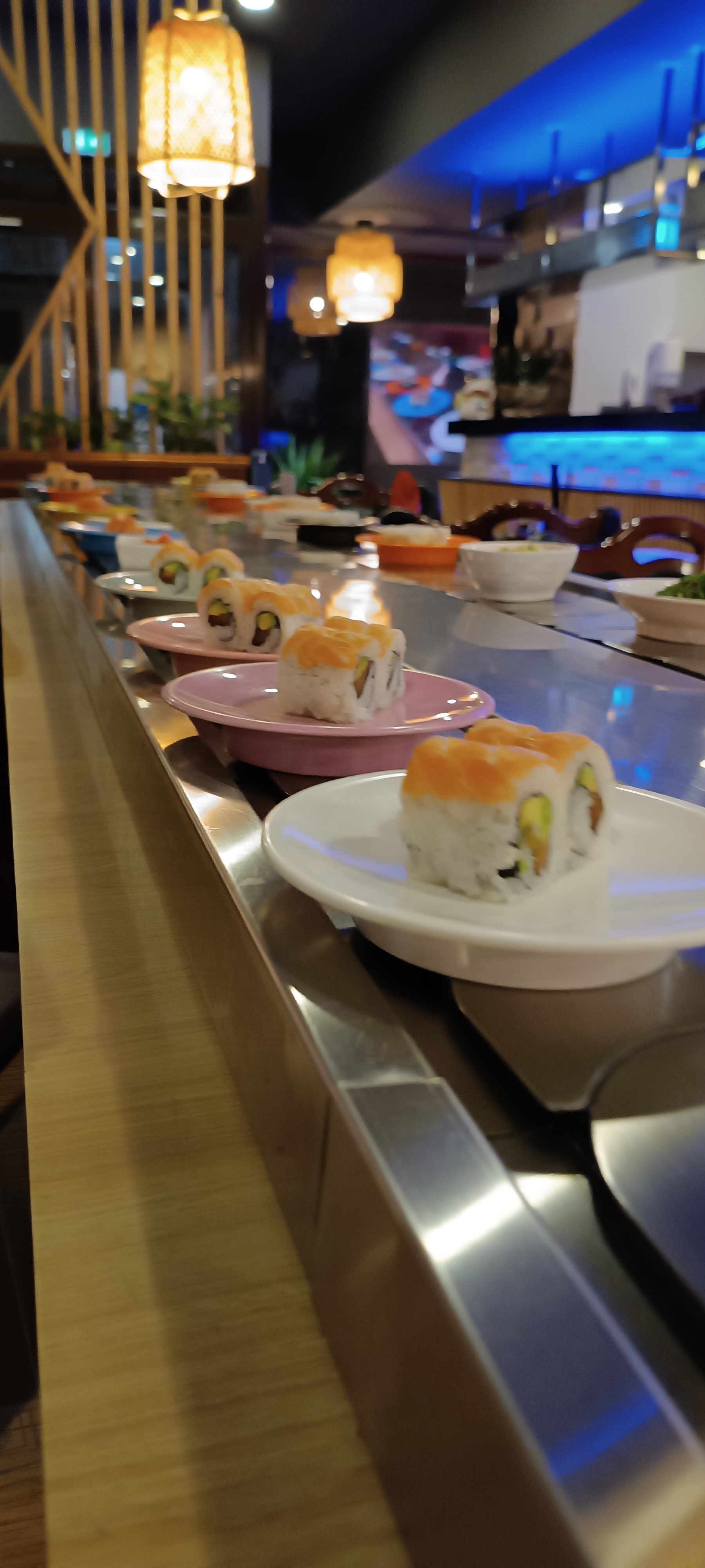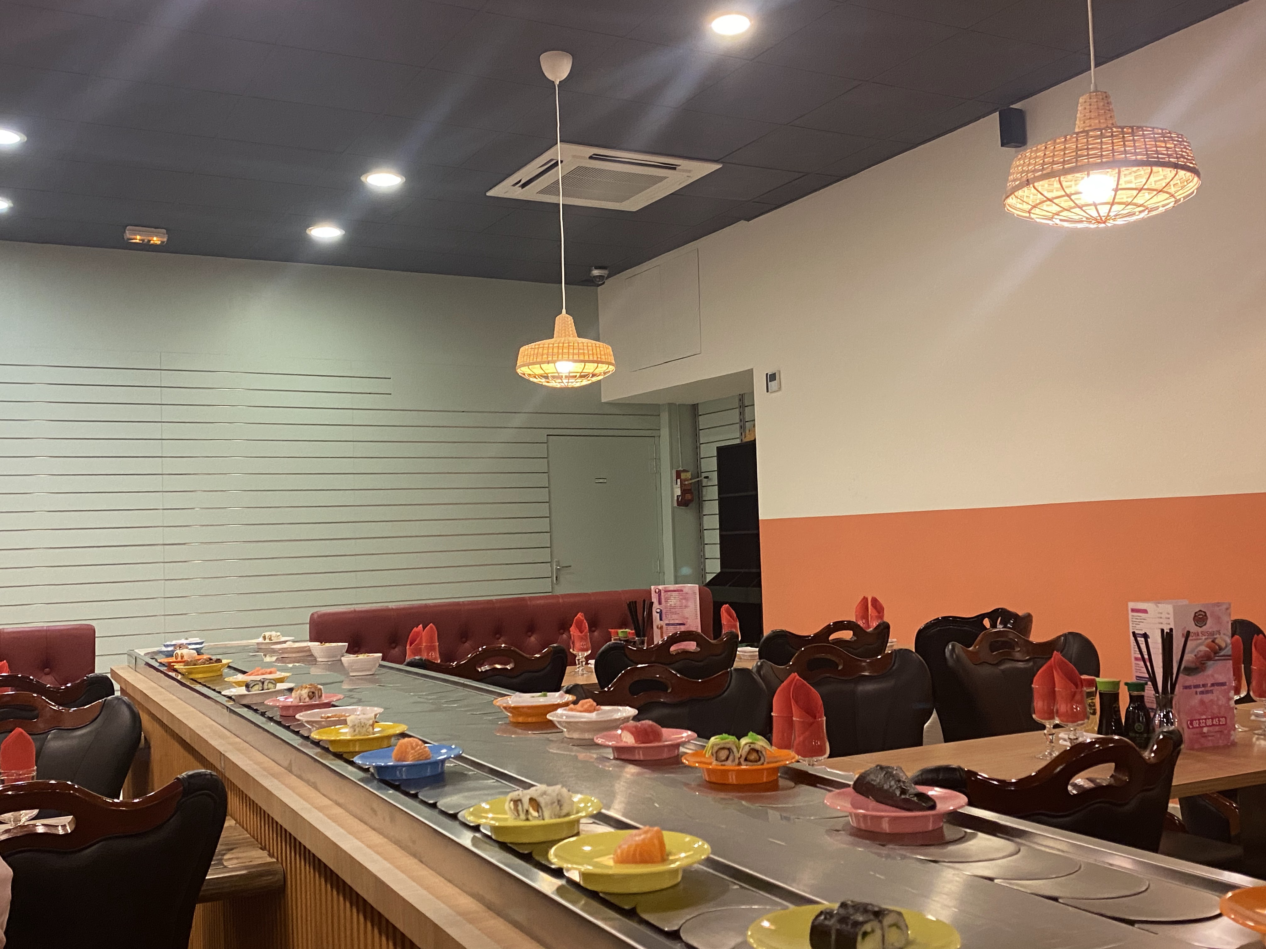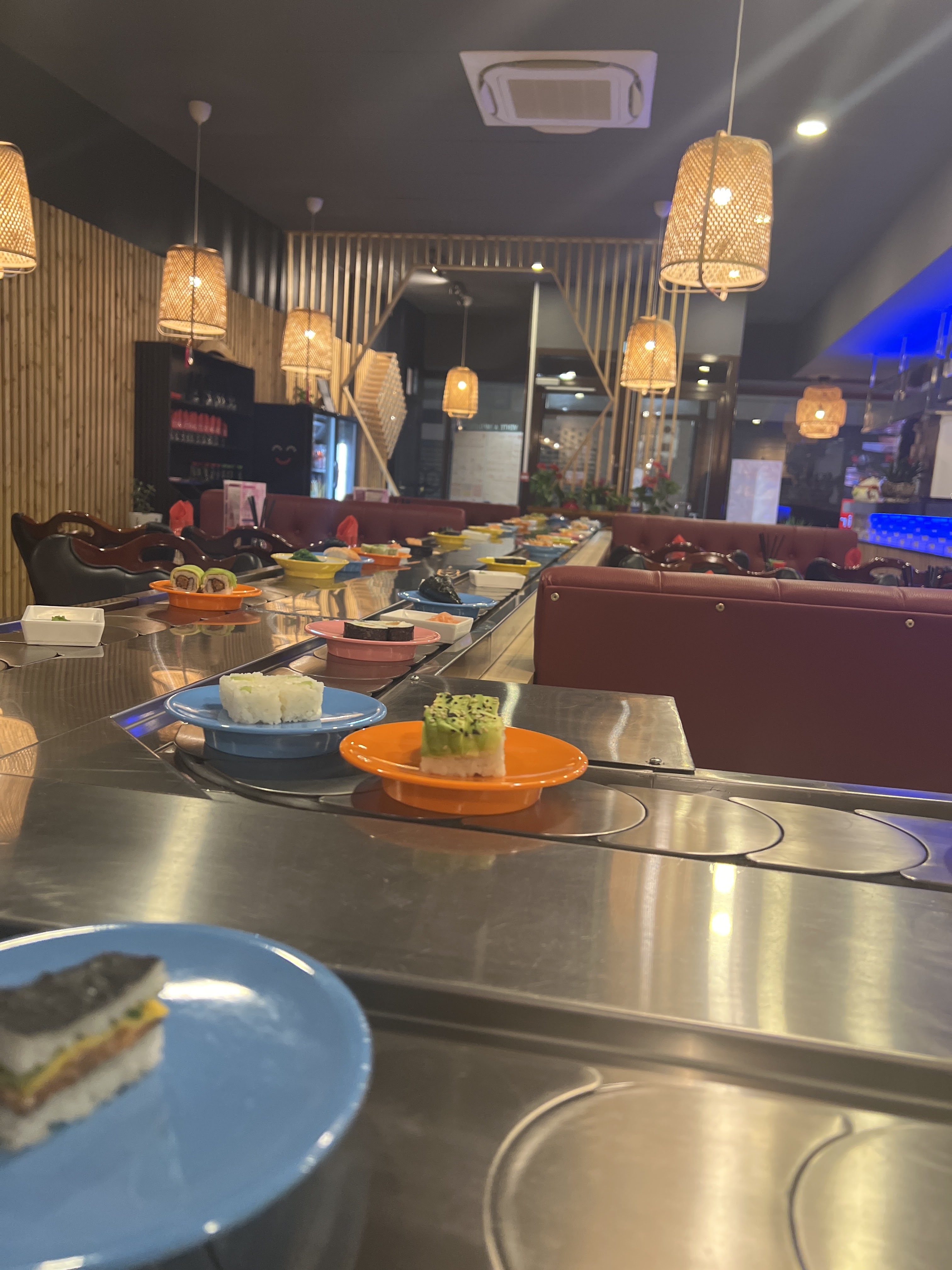 Lieu calme et sympathique et un personnel très gentil ! La déco est jolie et la nourriture de très bonne qualité ! On y mange très bien et système de tapis tournant pratique. Petite portion par assiette et permet de goûter au large choix qu’ils proposent. Le prix est justifié. Je vous recommande ce restaurant qui est superbe et très très bon.