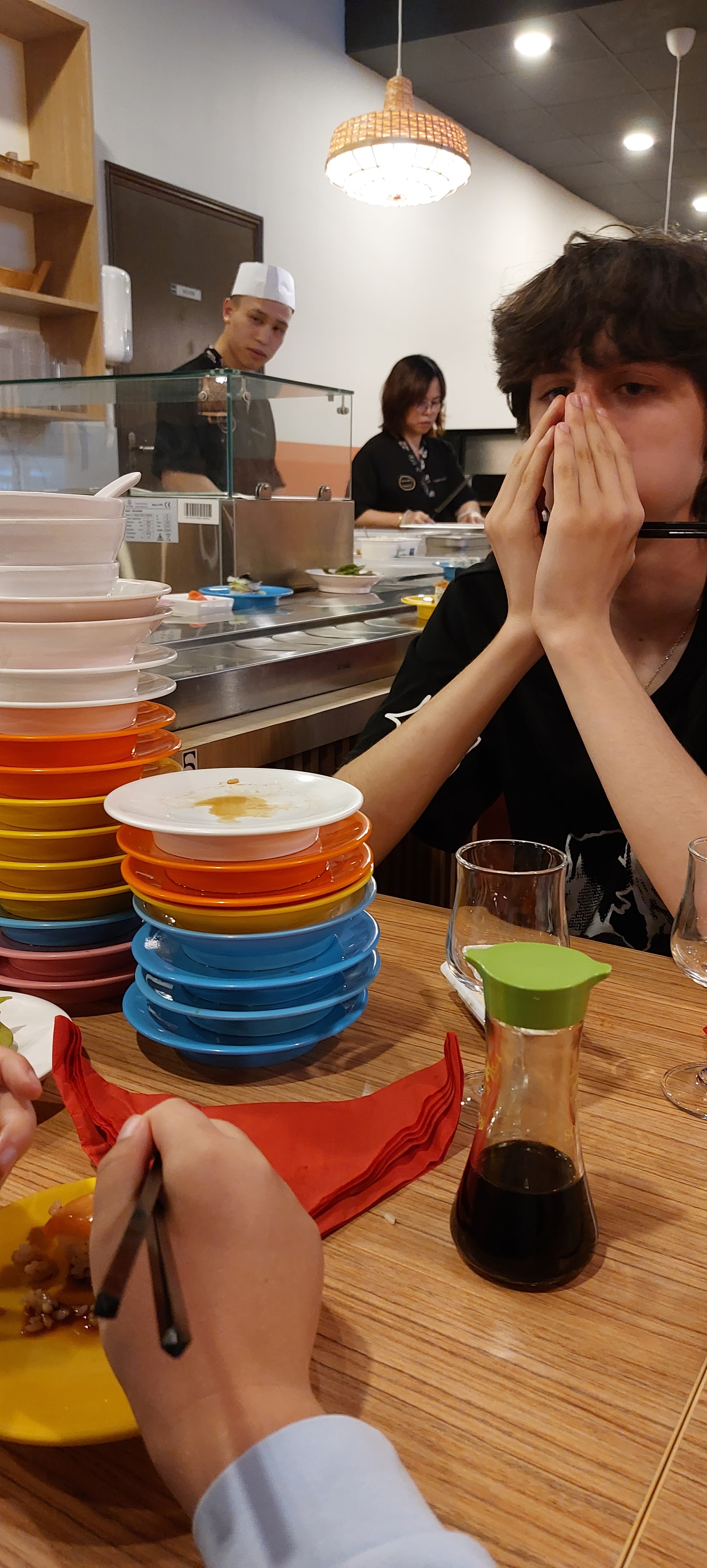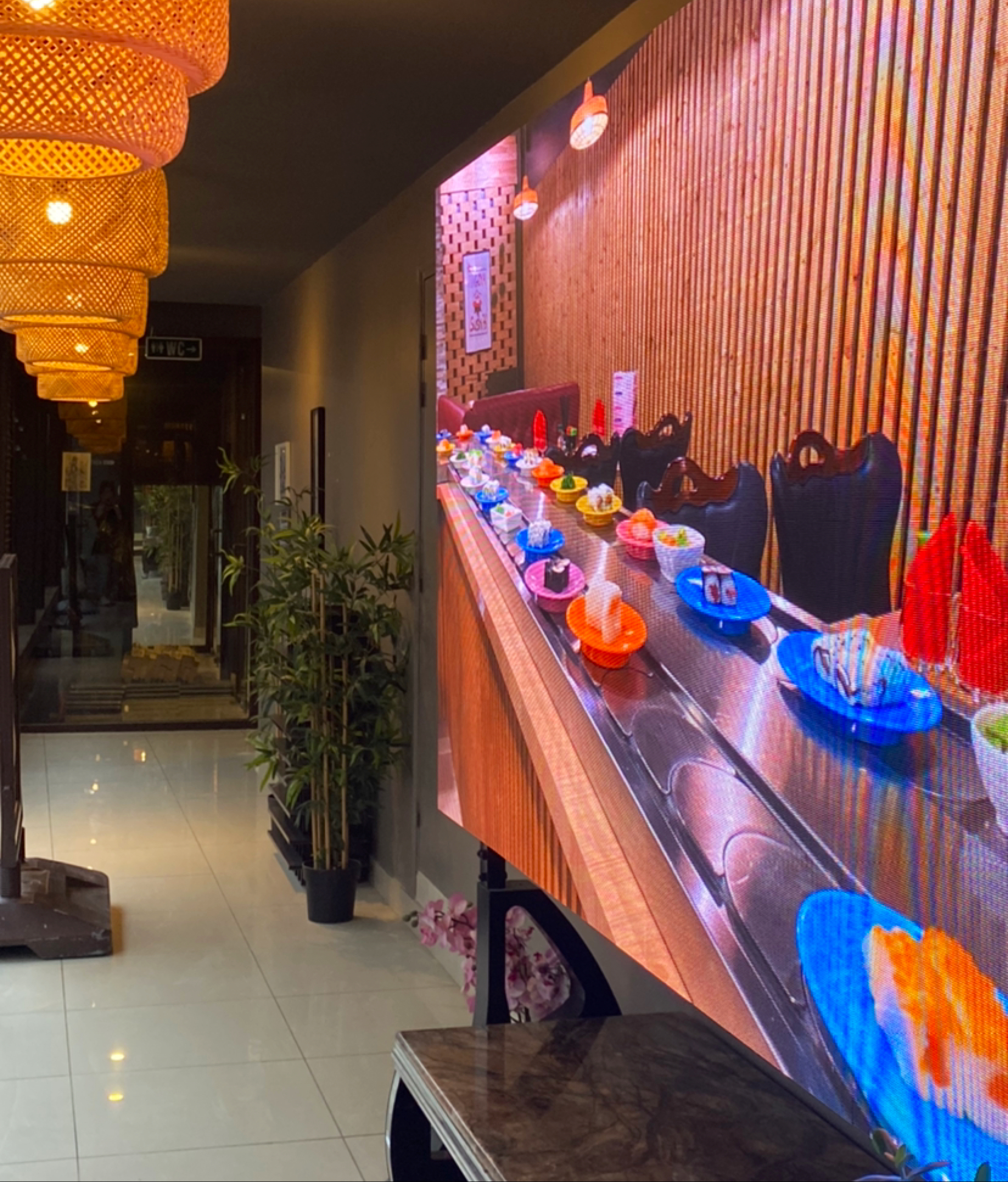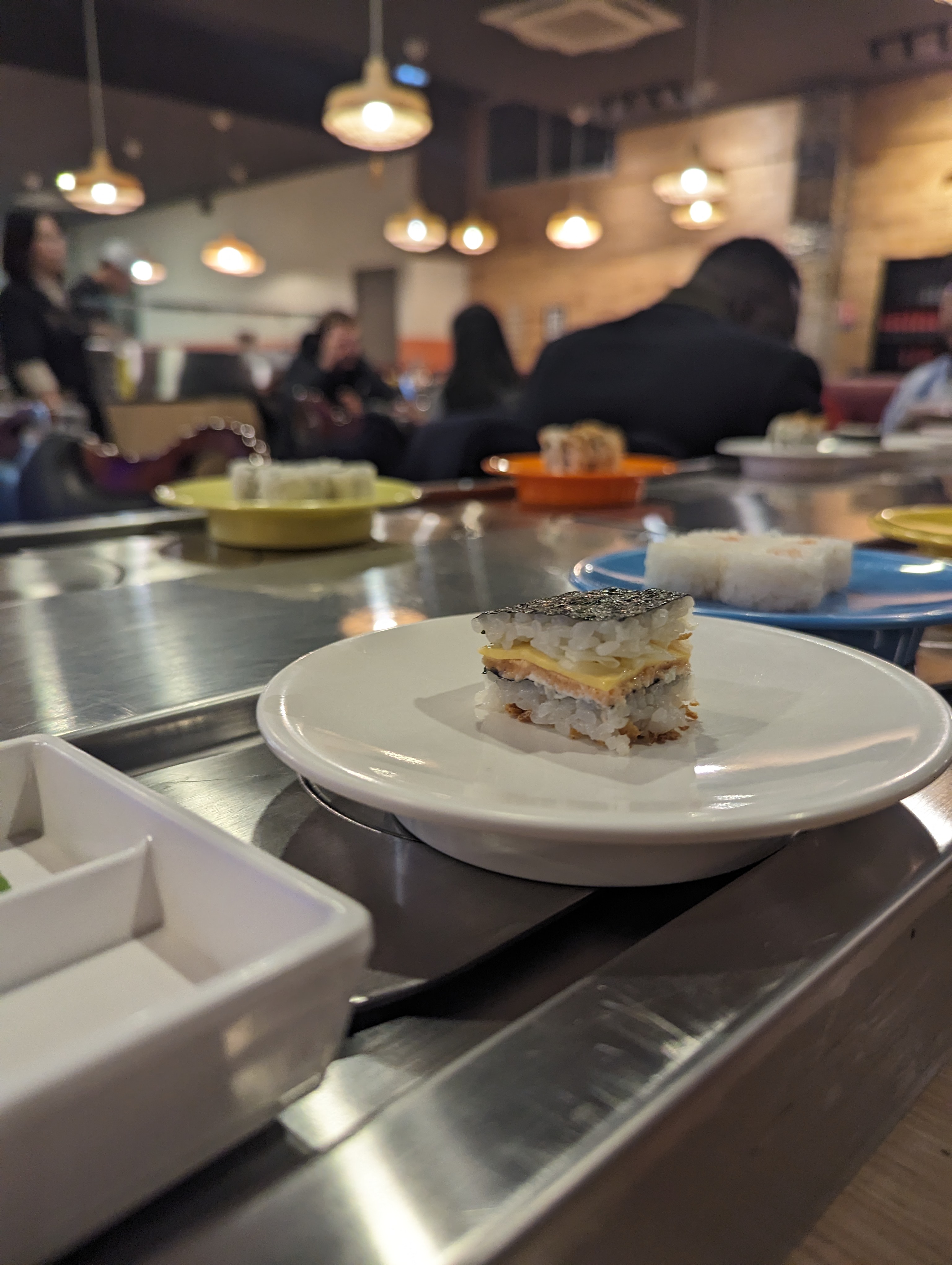Lieu calme et sympathique et un personnel très gentil ! La déco est jolie et la nourriture de très bonne qualité ! On y mange très bien et système de tapis tournant pratique. Petite portion par assiette et permet de goûter au large choix qu’ils proposent. Le prix est justifié. Je vous recommande ce restaurant qui est superbe et très très bon.
