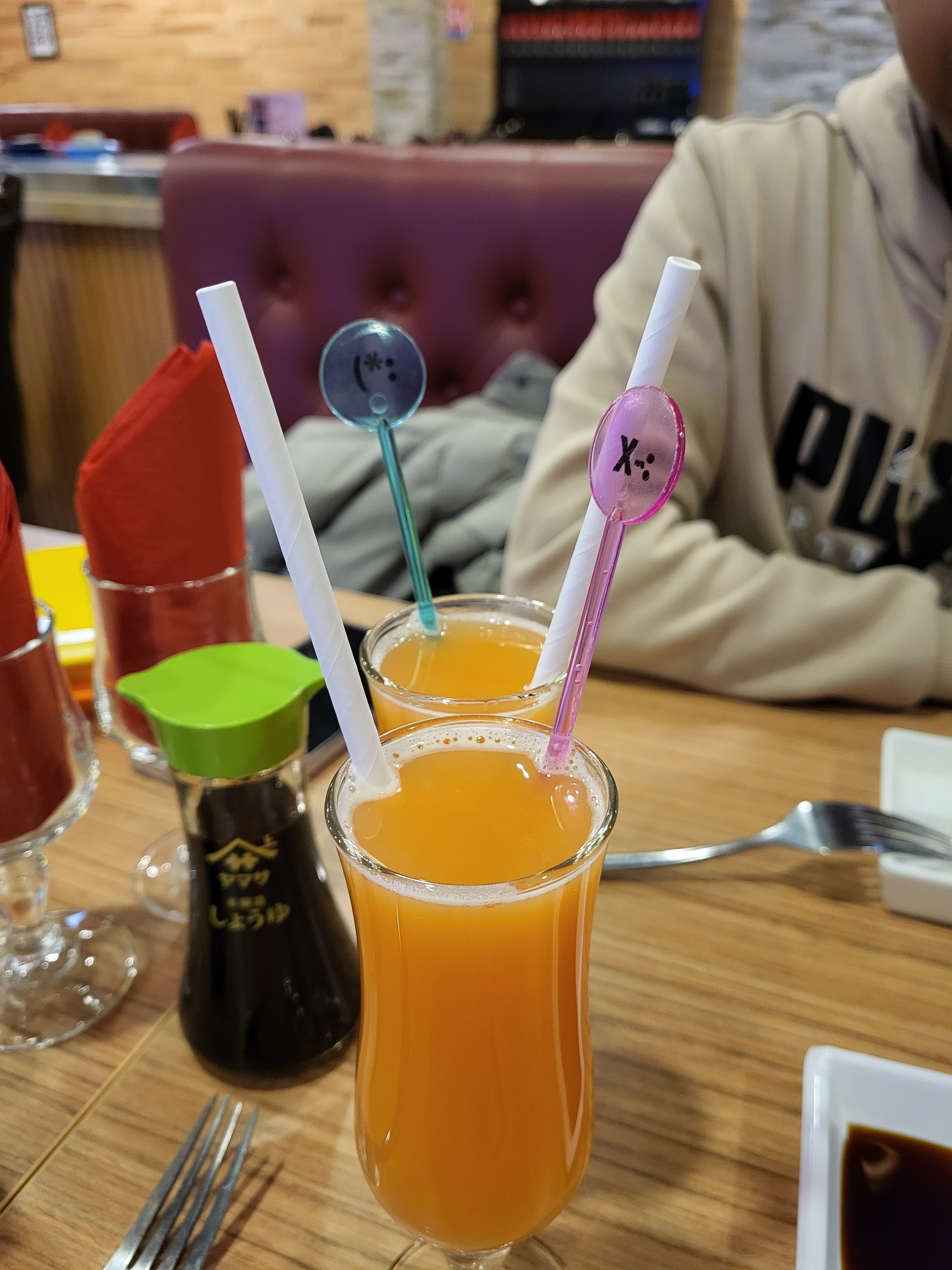 Serveuse et serveurs troooop gentils incroyable. Musique de manga trop mignonne, même le cuisinier a le sourire c'est trop bien. Trop bon incroyable